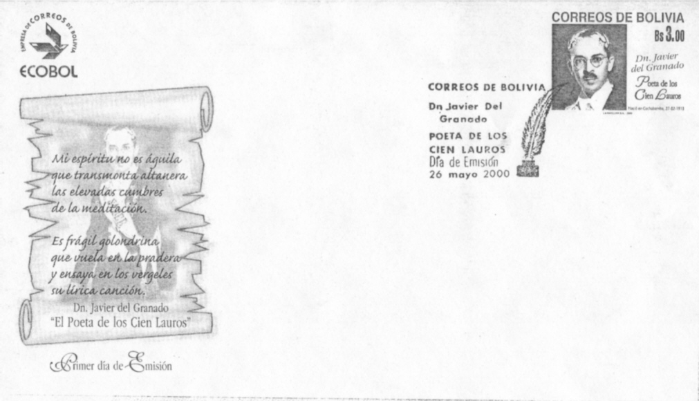 Mediante una resolución ministerial, el Ministerio de Desarrollo Económico y la Dirección de Correos de Bolivia oficializaron el reconocimiento del Estado al poeta cochabambino Javier del Granado, a través de la impresión de un sello postal con su imagen.
